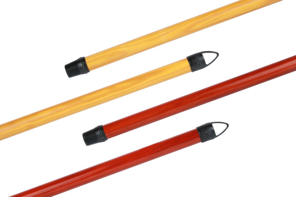 Manche en bois verni avec fixation à vis et accroche plastique, pratique, solide et facile à ranger.